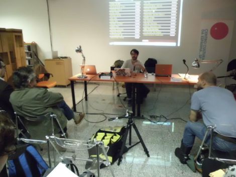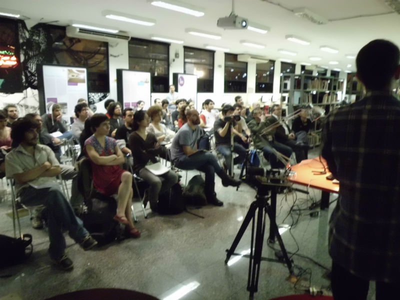 1. (acima) Visão geral da oficina e do espaço do CCE_SP. Dá para ver a montagem da nossa câmera, em uma base de madeira, parafusos e cantoneiras. Em breve postaremos fotos com mais detalhes;
