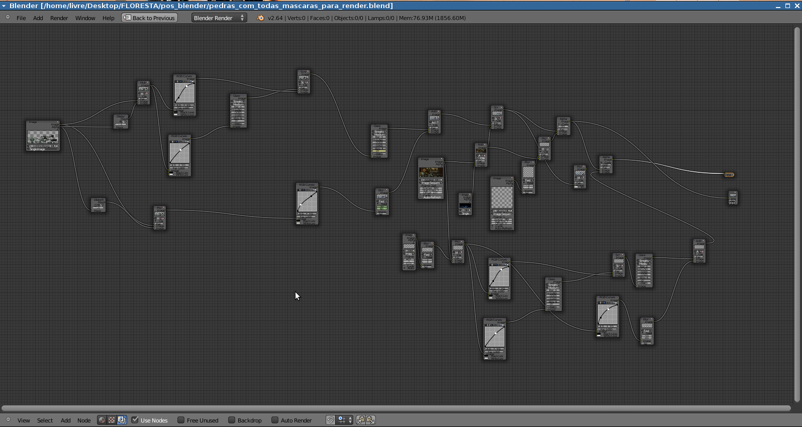 Renderizando os efeitos que o Gelo criou em Campinas, quando fui lá na terça-feira. Agora, com a máscara que ele fez, usando curvas Bezier, e as que terminei hoje, já na interface de masking do último Blender. Estão vendo esse bolo todo aí em cima? Pois é, esse é o trabalho do Gelo! Só demorei um tempinho para me achar aí no meio! =p