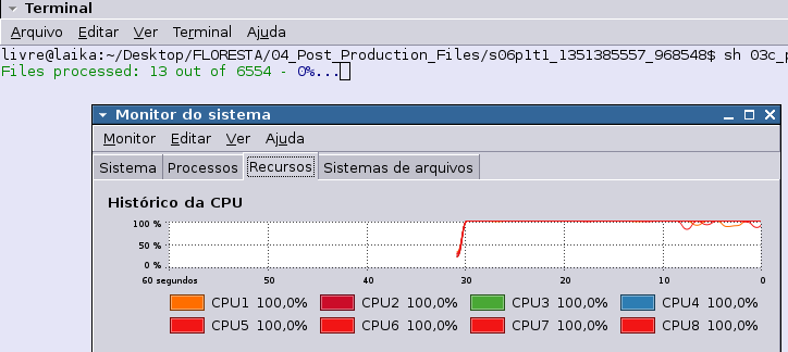 Começa o dia náutico de 72 horas. Como Roald Amundsen, como Amyr Klink, agora é dormir muito pouco, renderizar muito, terminar o que falta e partir para as festas. O dia todo, ou as próximas 72 horas, vão ser mais ou menos nesse naipe: 8 núcleos de processamento, funcionando a 100% de carga. Daí a Gjøa pode começar a pensar em voltar para a casa.