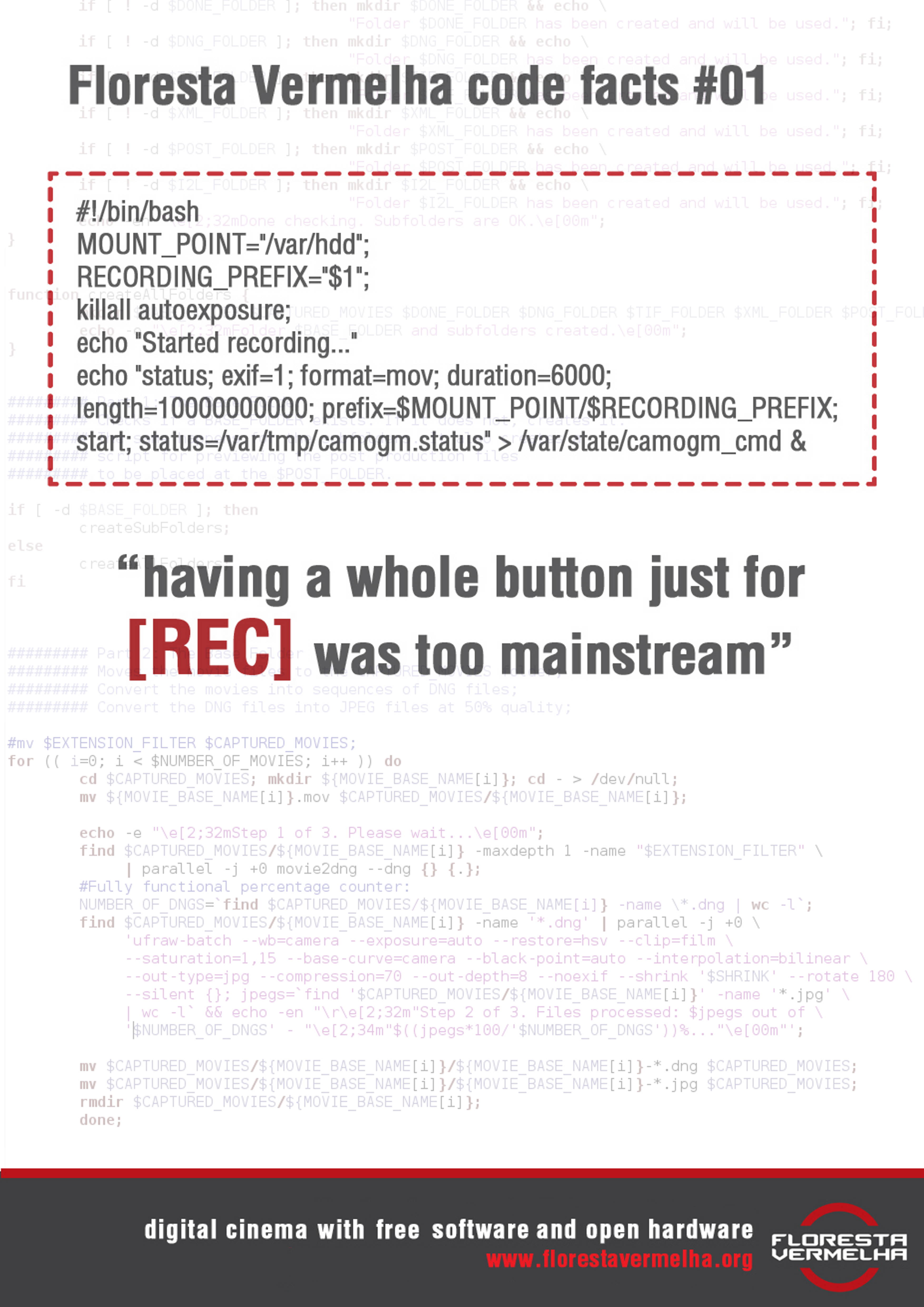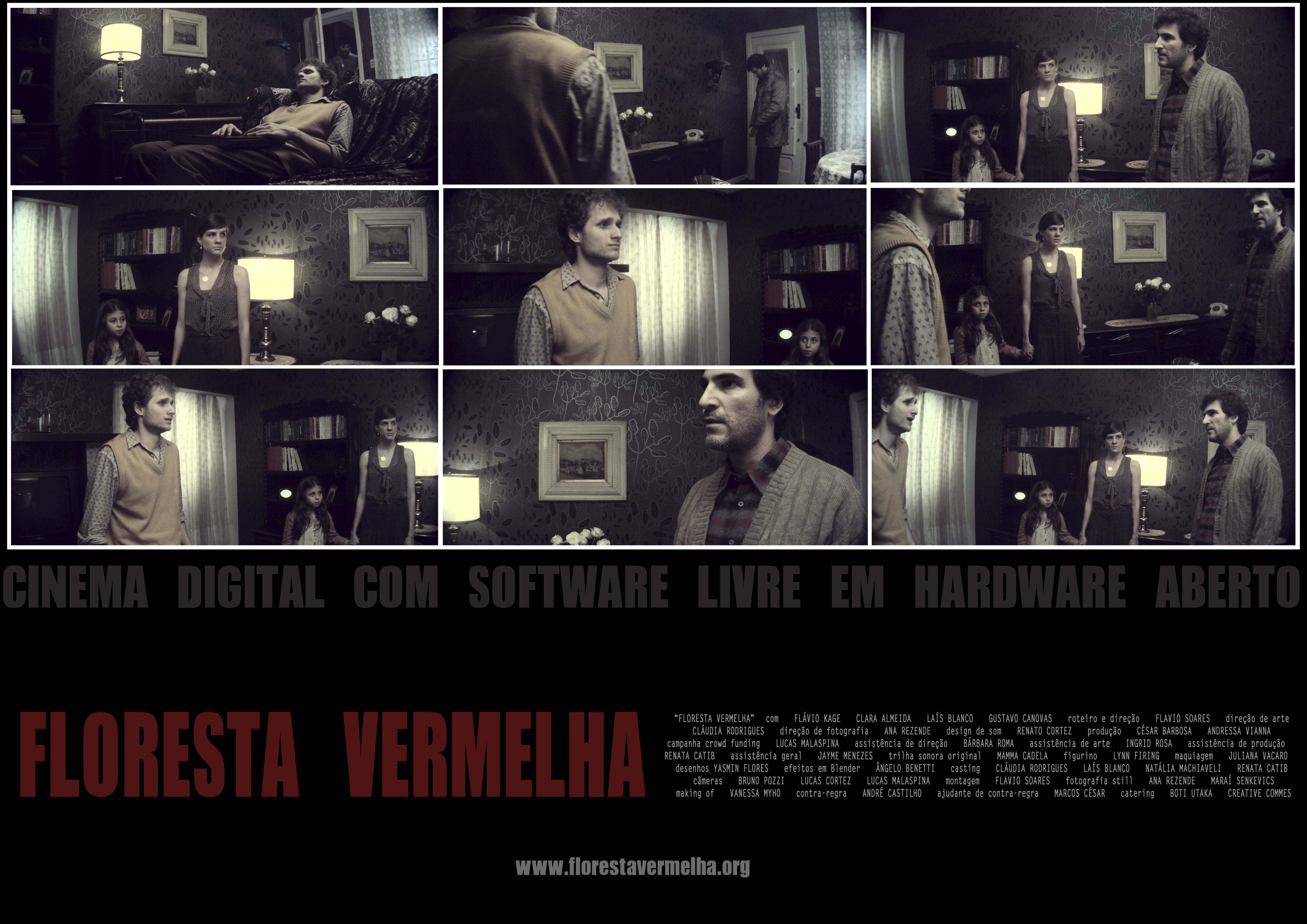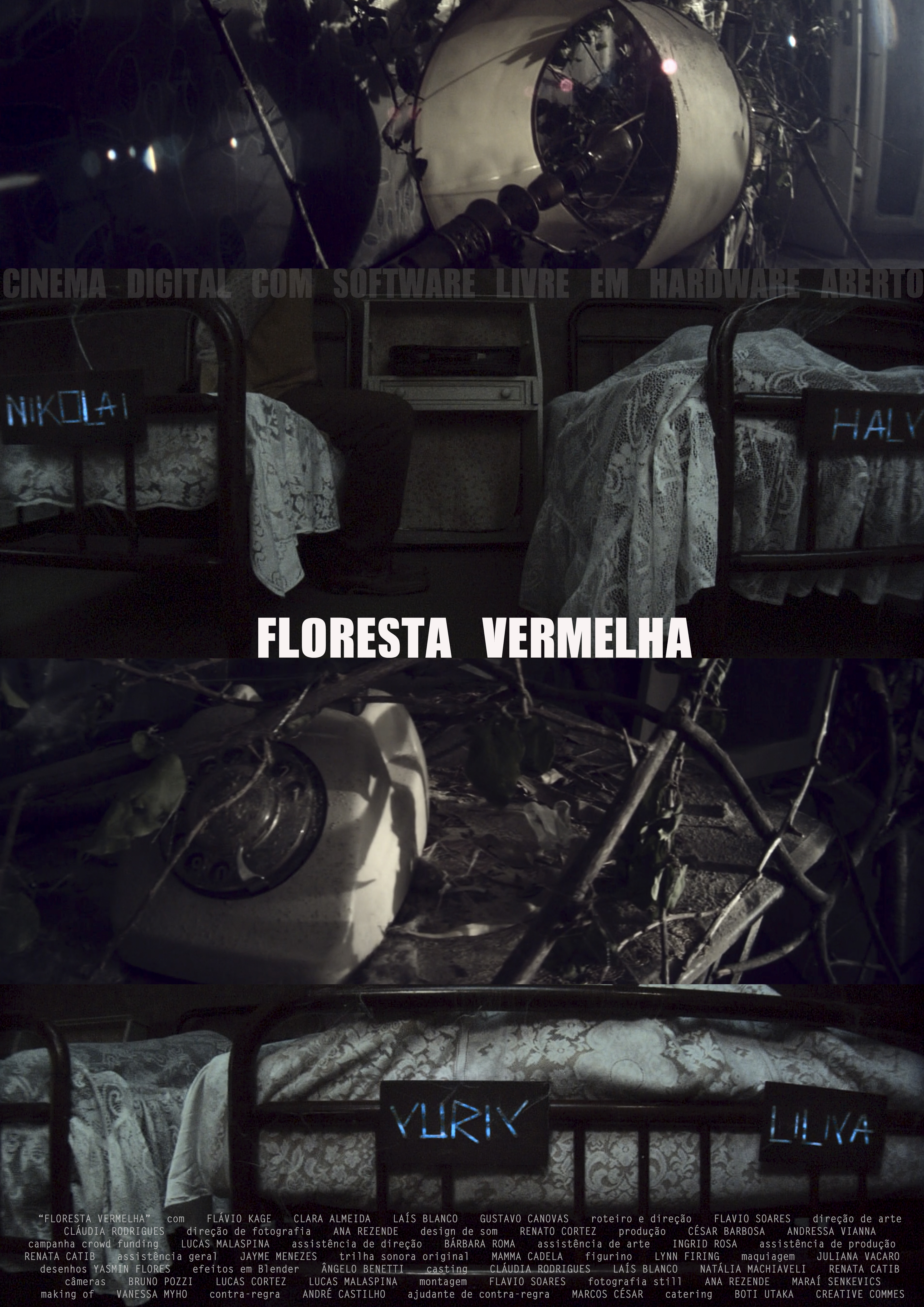 Todos os pôsteres têm arte de Ana Rezende e foram feitos a partir de quadros do filme ou fotografias de Ana Rezende, Maraí Senkevics e Lucas Malaspina, exceto o pôster Floresta Vermelha code facts, que é um mashup da arte original de Lucas Malaspina para a campanha de financiamento colaborativo (crowd funding).