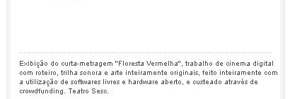 “O que não se aprende na escola”. É com este mote que o Centro Cultural São Paulo hospeda seis aulas/cursos/oficinas relacionadas a Cinema Digital Open Source durante os próximos finais […]